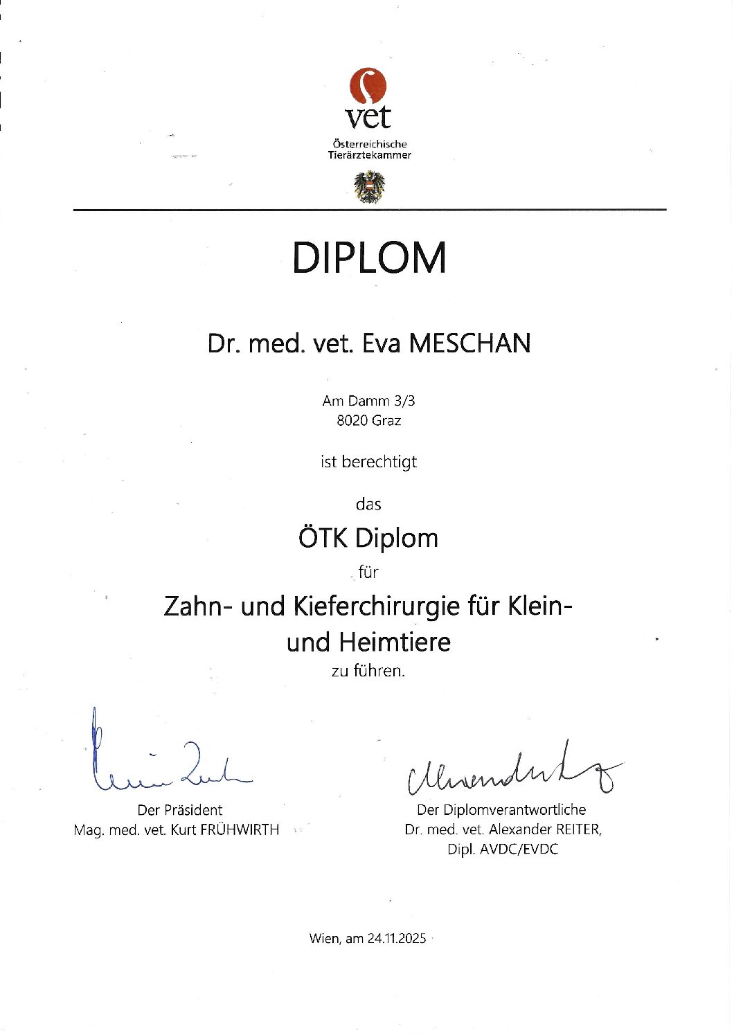 2001 Abschluss Diplomstudium Veterinärmedizin an der Veterinärmedizinischen Universität Wien